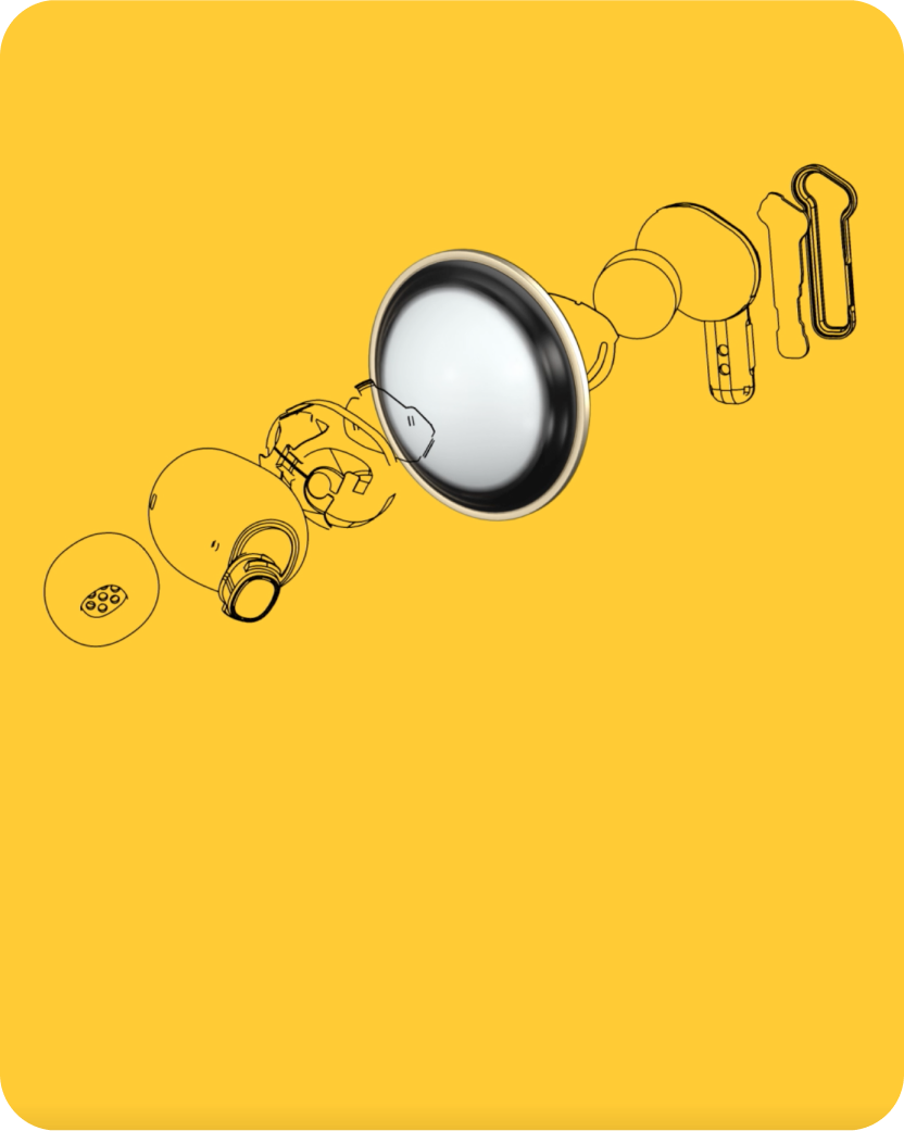 We've made our driver even more compact. With double the power than Ear (2), Ear (a) delivers an even deeper bass performance.